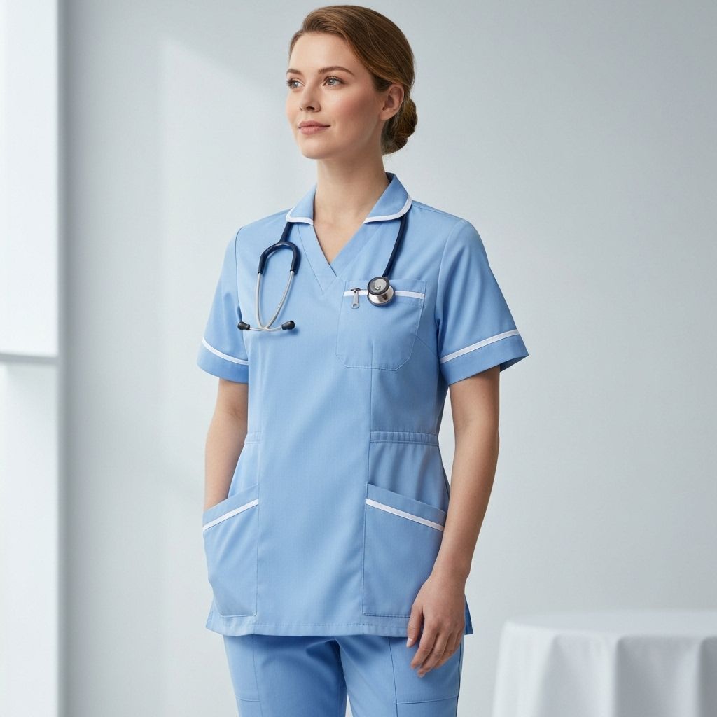 Professional nurse uniform with comfortable fit. Designed for long shifts and patient care.